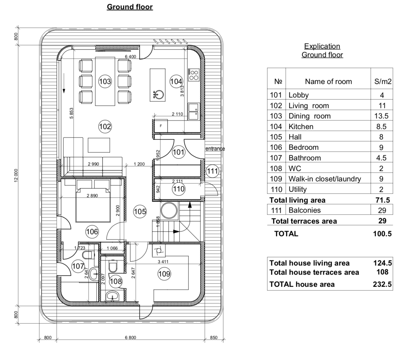 By the amount of HPL. The volume is calculated ONLY for wooden wall panels, excluding trimming and excluding gills, excluding dark inserts above the windows (read above). For a one-story house: 61m2, and for a two-story house 115m2.